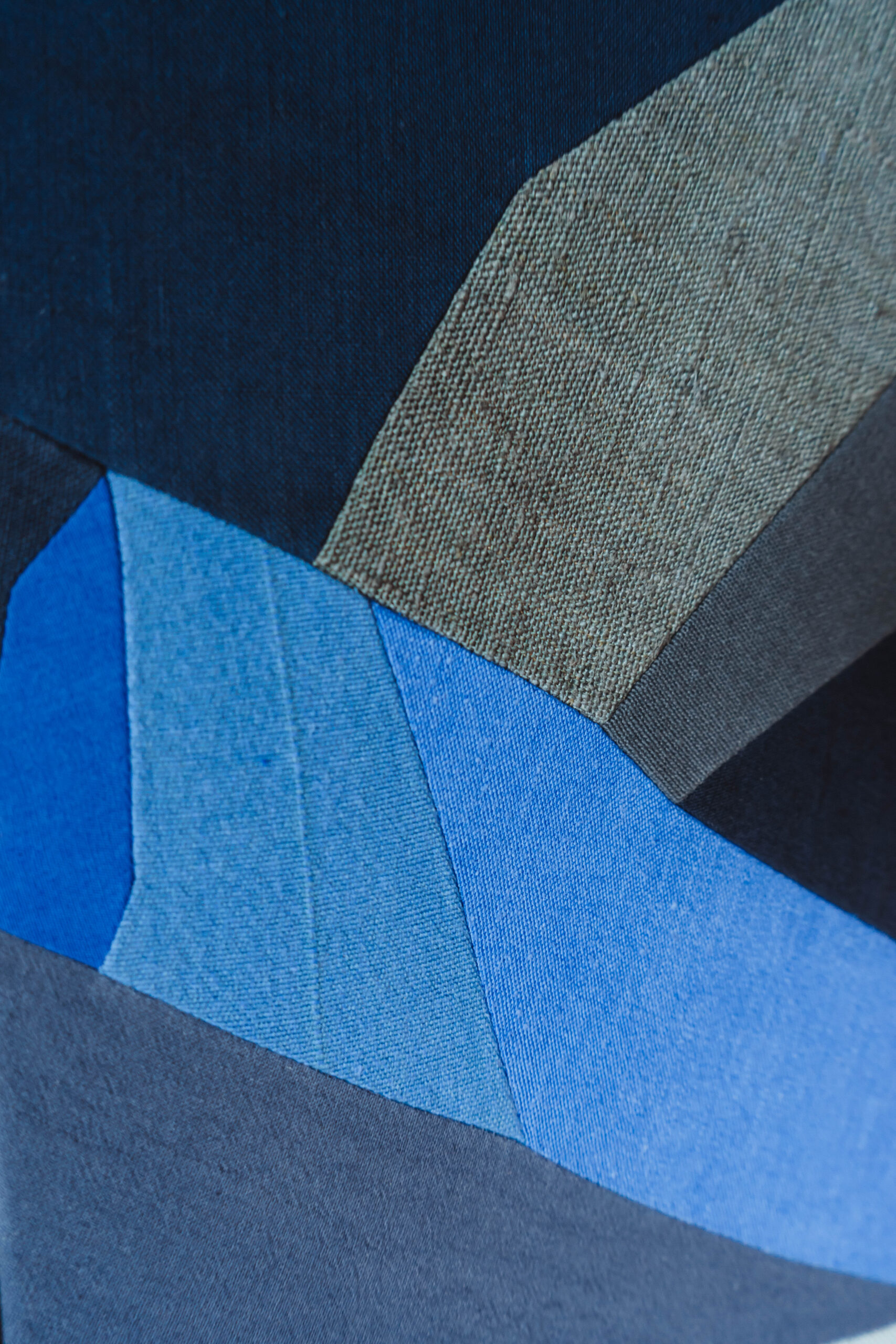 Chaque tableau est une œuvre minutieuse, résultant de l’assemblage de linges anciens, recyclés et teints par mes soins. Ce mélange de textures et de couleurs est ensuite réuni en couture dans une approche contemporaine du patchwork, où chaque pièce de tissu raconte sa propre histoire.