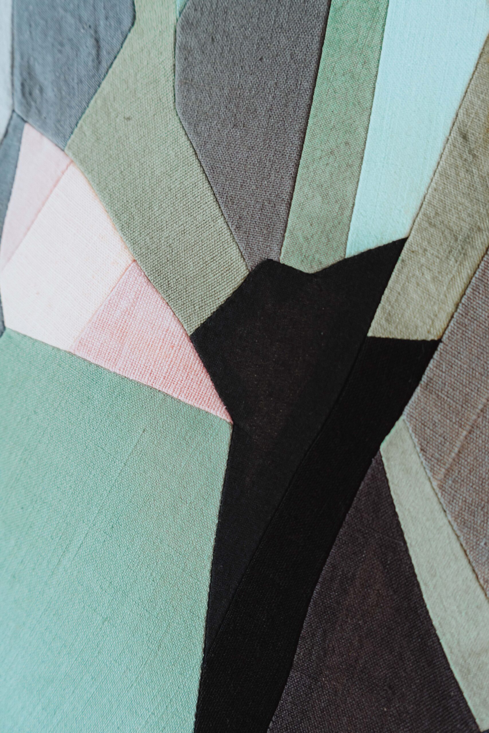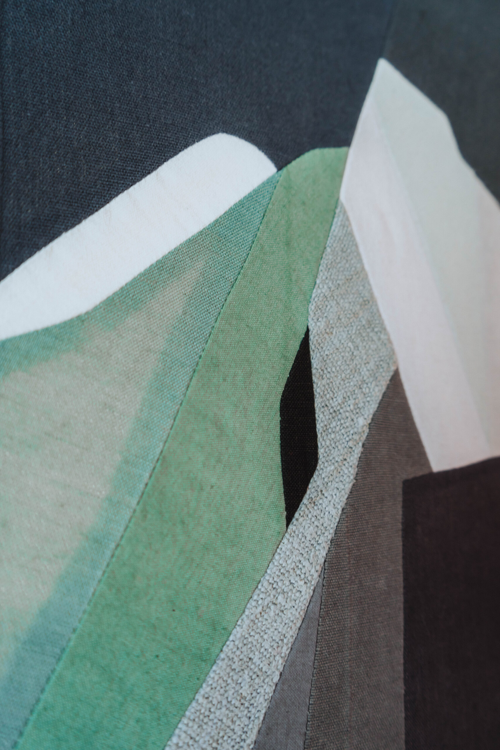 Chaque tableau est une œuvre minutieuse, résultant de l’assemblage de linges anciens, recyclés et teints par mes soins. Ce mélange de textures et de couleurs est ensuite réuni en couture dans une approche contemporaine du patchwork, où chaque pièce de tissu raconte sa propre histoire.