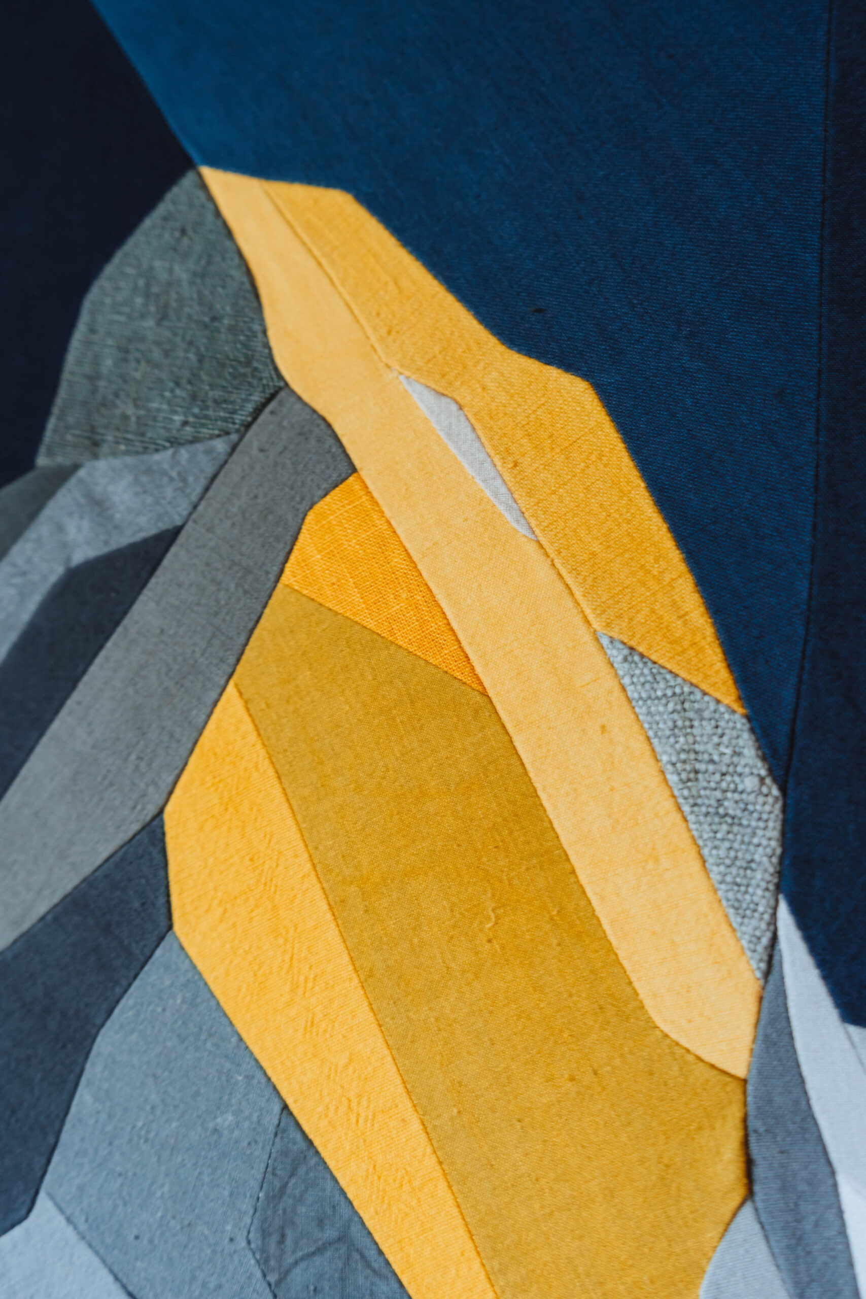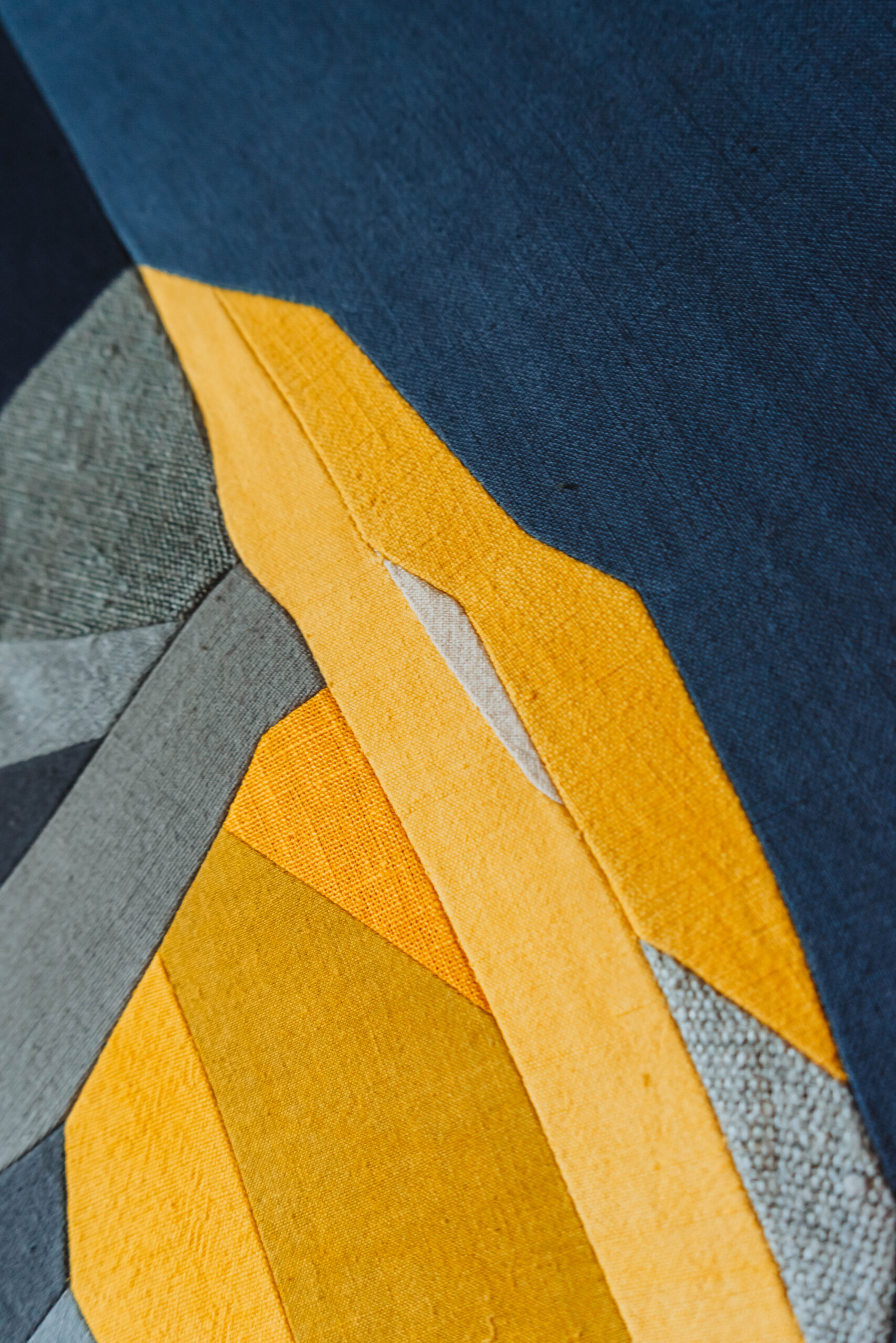 Chaque tableau est une œuvre minutieuse, résultant de l’assemblage de linges anciens, recyclés et teints par mes soins. Ce mélange de textures et de couleurs est ensuite réuni en couture dans une approche contemporaine du patchwork, où chaque pièce de tissu raconte sa propre histoire.